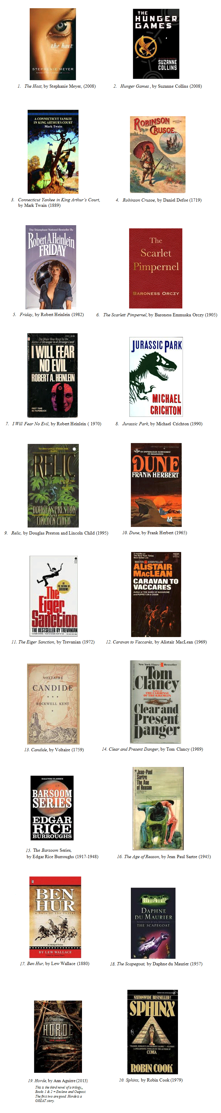 A Tale of Two Cities, Call of the Wild, Lolita, The Adventures of Huckleberry Finn, Hamlet, The Grapes of Wrath, Don Quixote, To Kill A Mockingbird,