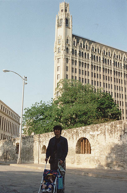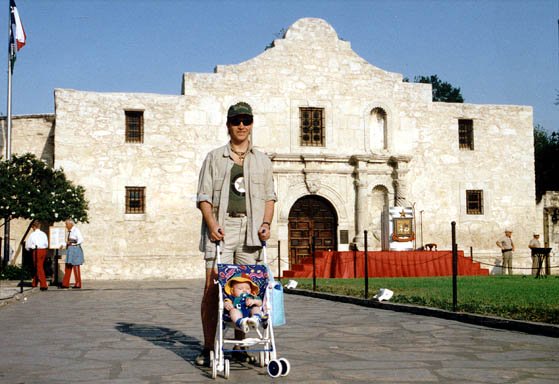 Robin (1996) with Kit at 6 months old on his first road trip to San Antoino and Corpus Christi.